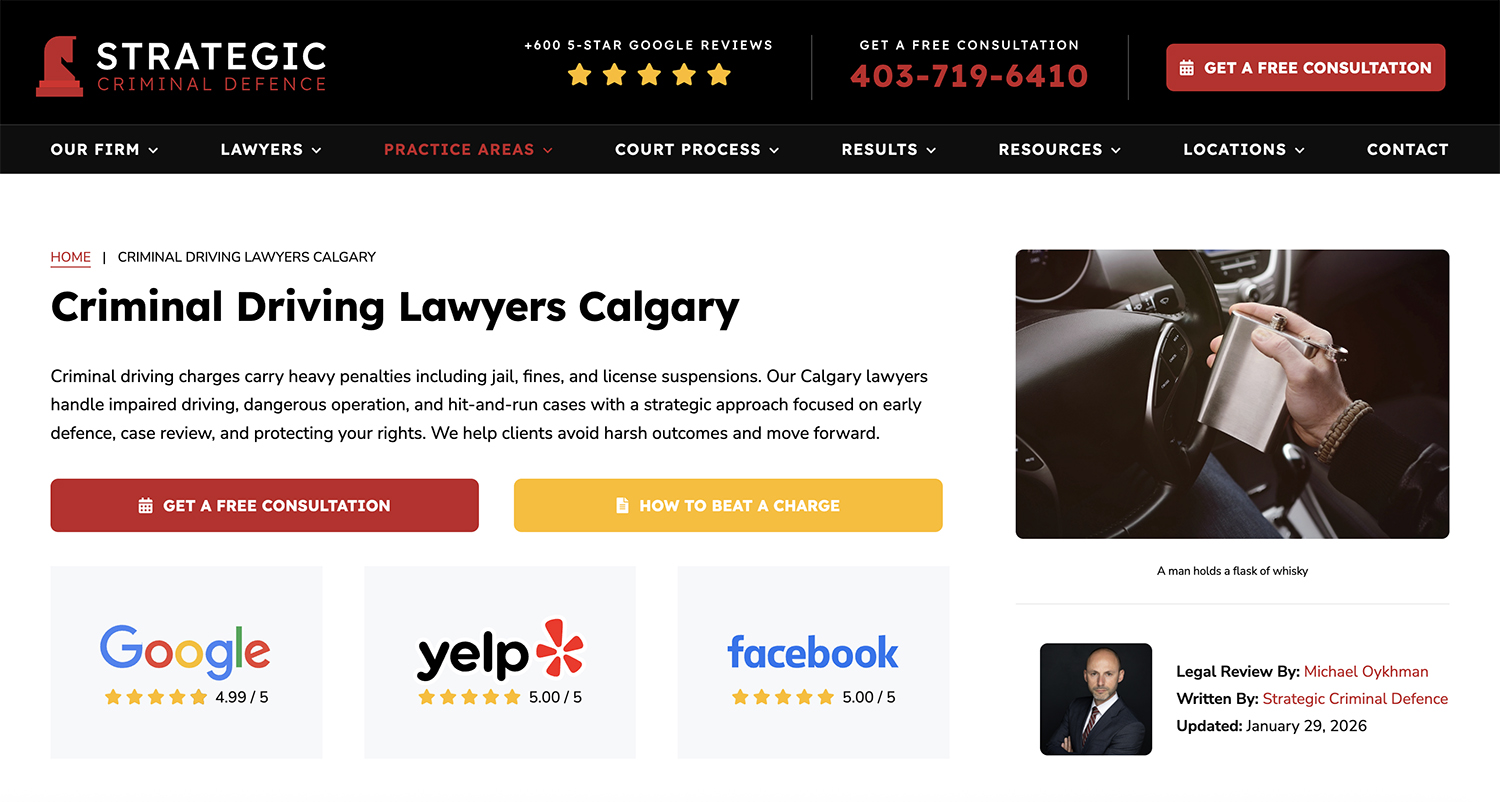 Each of these practice areas should have a dedicated page, which should go into some detail about the services you provide and impart information that will help answer the questions that are of the utmost importance to your visitors in this area of law.