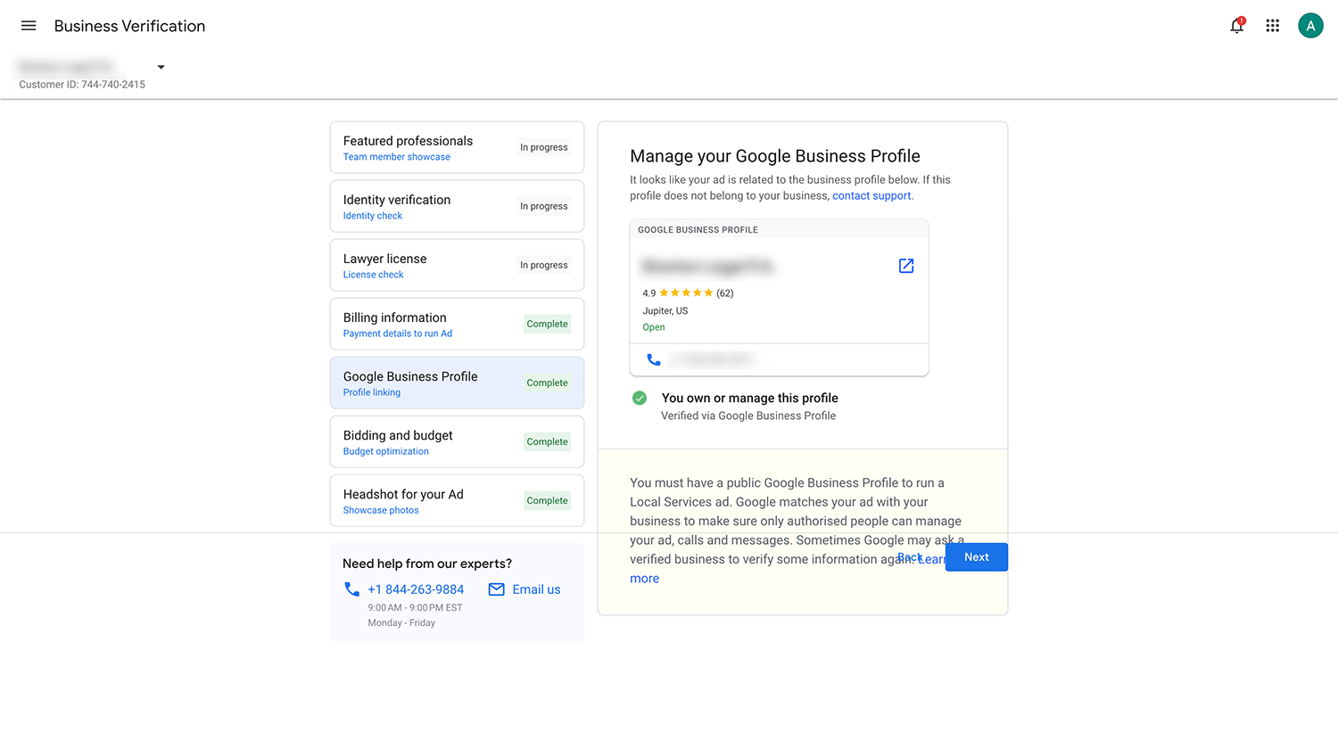More detailed information is required for your LSA business profile. You’ll need to enter details about your firm and the people working in it. For instance, each legal professional working in your firm will need to be verified with their bar license information.