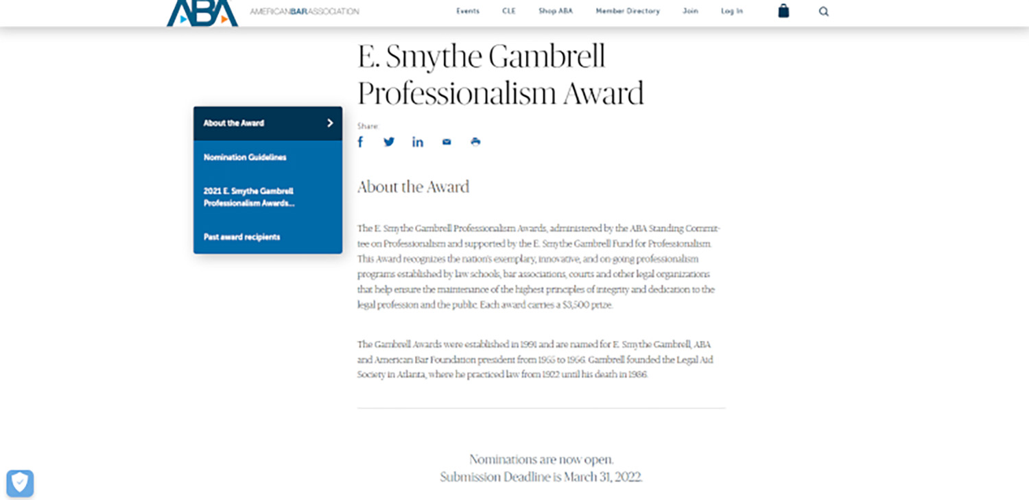 One of the most prestigious awards given out by the ABA Law Practice Division. This award recognizes excellence in law practice management.