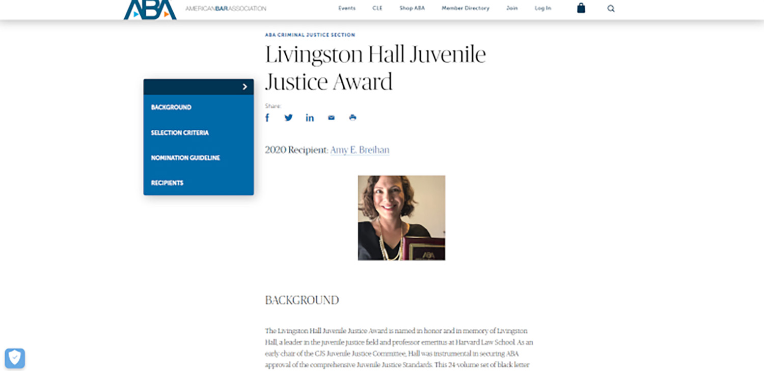 Apply if: You’re a judge, prosecutor, academic, or attorney who is a member of the ABA’s Criminal Justice Section and’ve demonstrated excellence in the practice area.