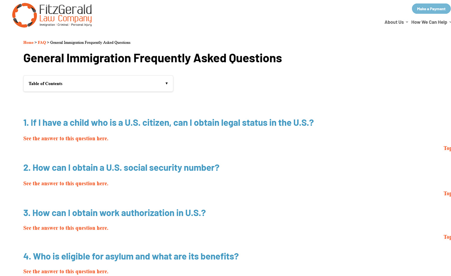 Here’s the FAQ part of a recent newsletter from Fitzgerald Law Company, an immigration law firm in Boston.