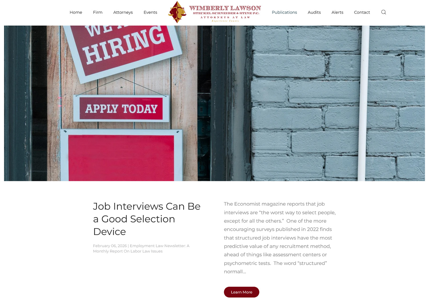 Alternatively, pass on updates to relevant laws or other legal news with articles, like in this newsletter from employment law firm Wimberley, Lawson, Steckel, Schneider & Stine P.C. based in Georgia.