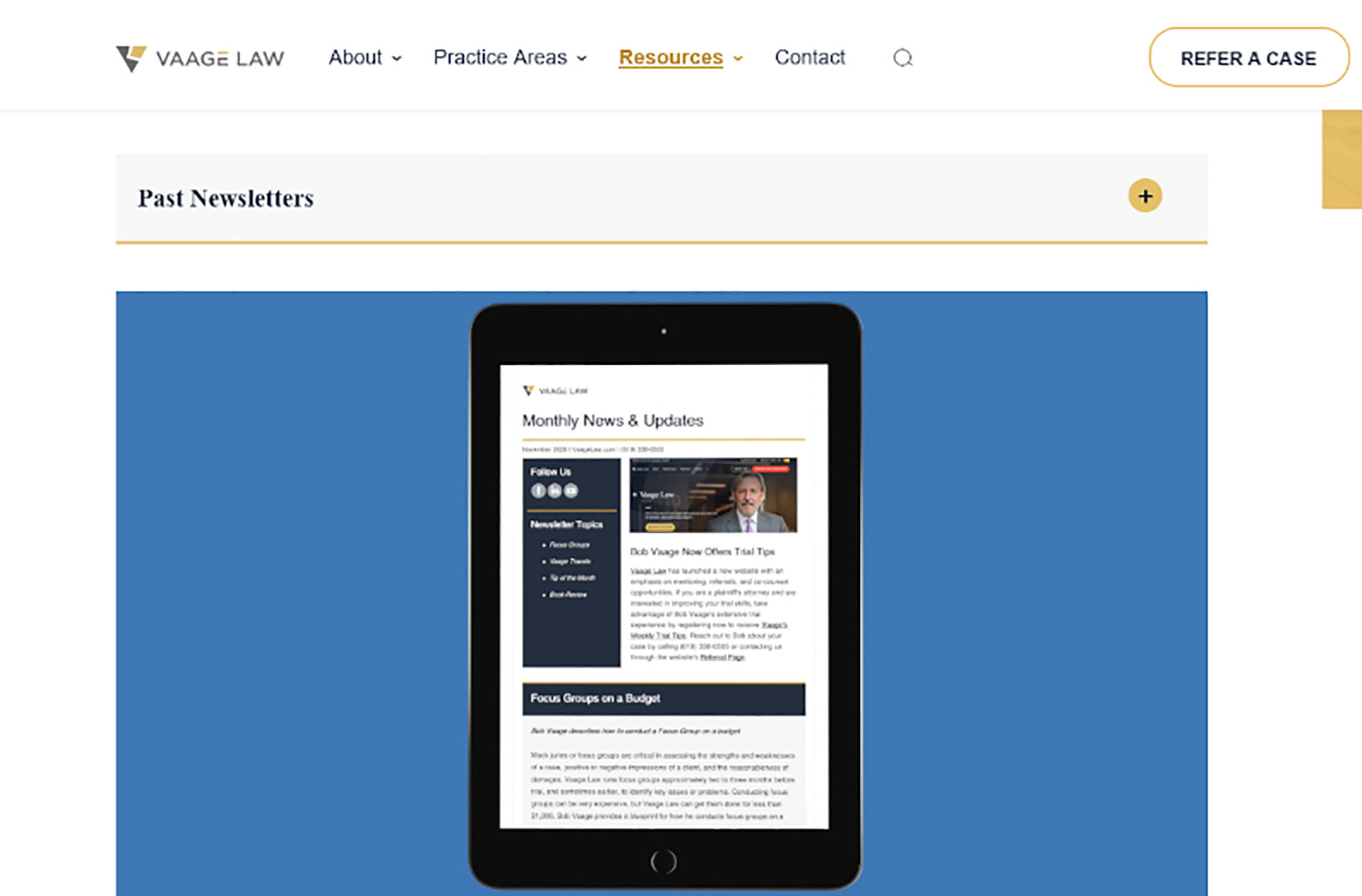 If a new lawyer has joined, you’ve won an award, or worked on a high-profile case, consider putting in your newsletter.
