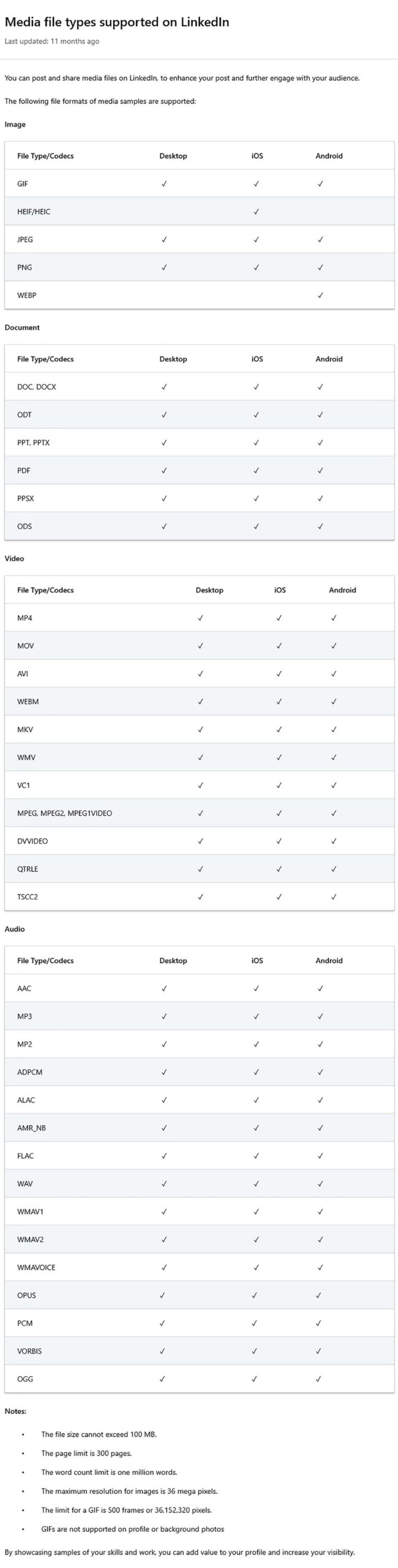 Here’s a good breakdown of what LinkedIn allows you to add to your profile: