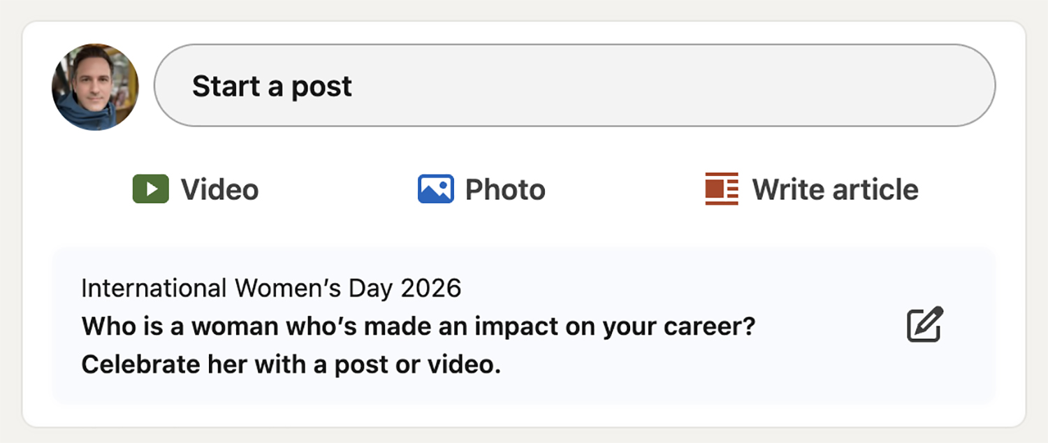 As you can see from the icons on the right-hand side of this box, you can create an image post, video post, or document-based post. You can also write an article and post or just add text (though posts with images or videos get far more engagement than text-only posts).