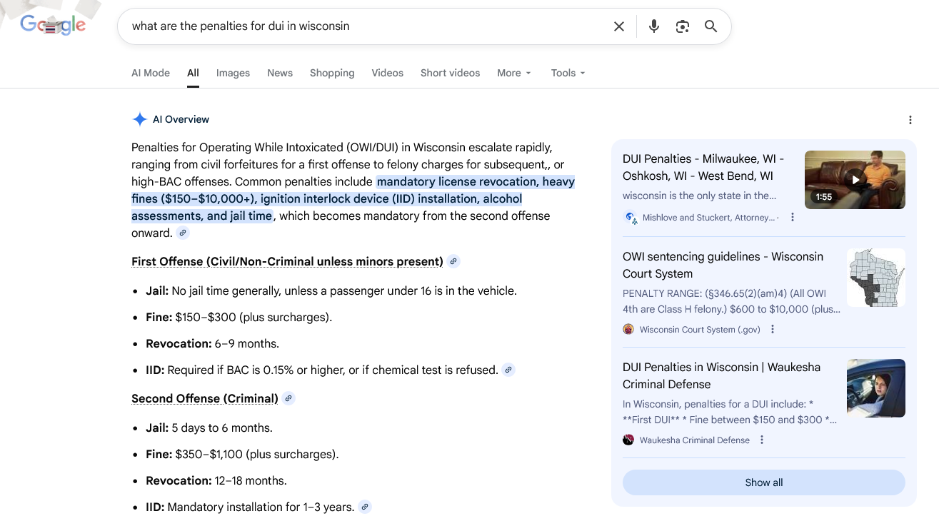 The AI-generated summaries at the top of the page may have pushed organic listings a notch further down the results pages but they still provide opportunities for law firms to gain “content credit” for providing the source of information.