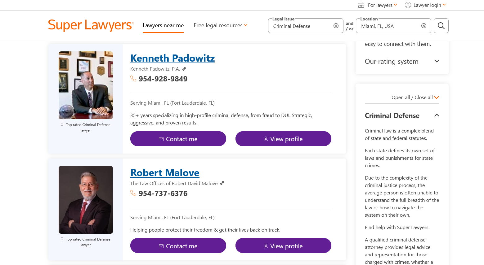 Clicking the Super Lawyers link above takes you to this page: