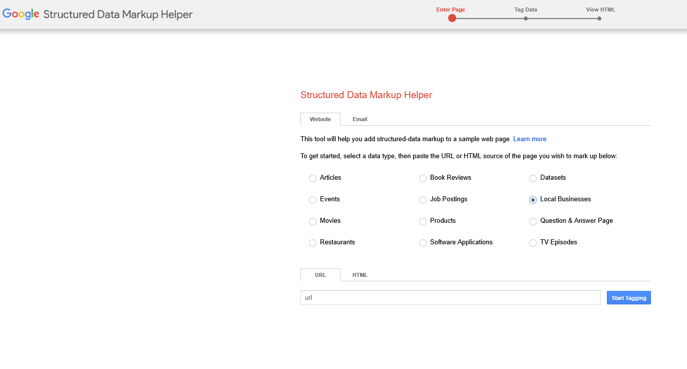 - Select Local Businesses and enter the URL of your firm’s website.