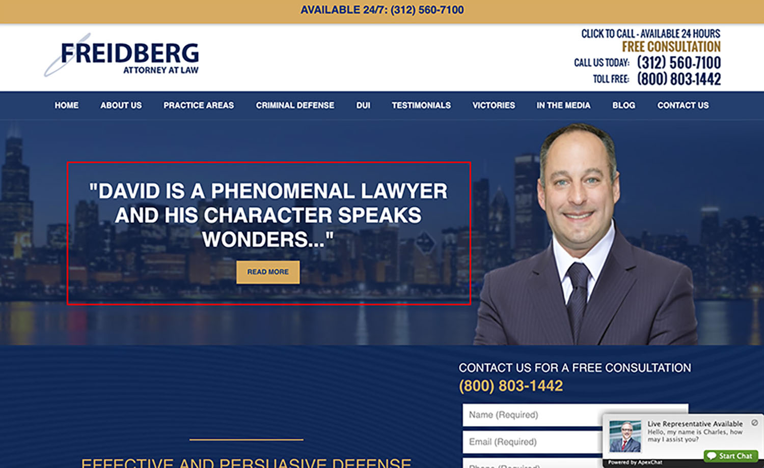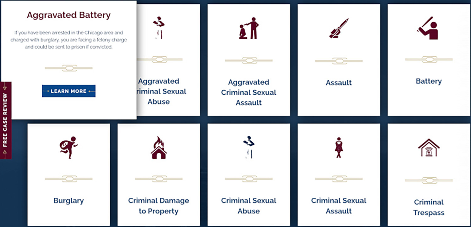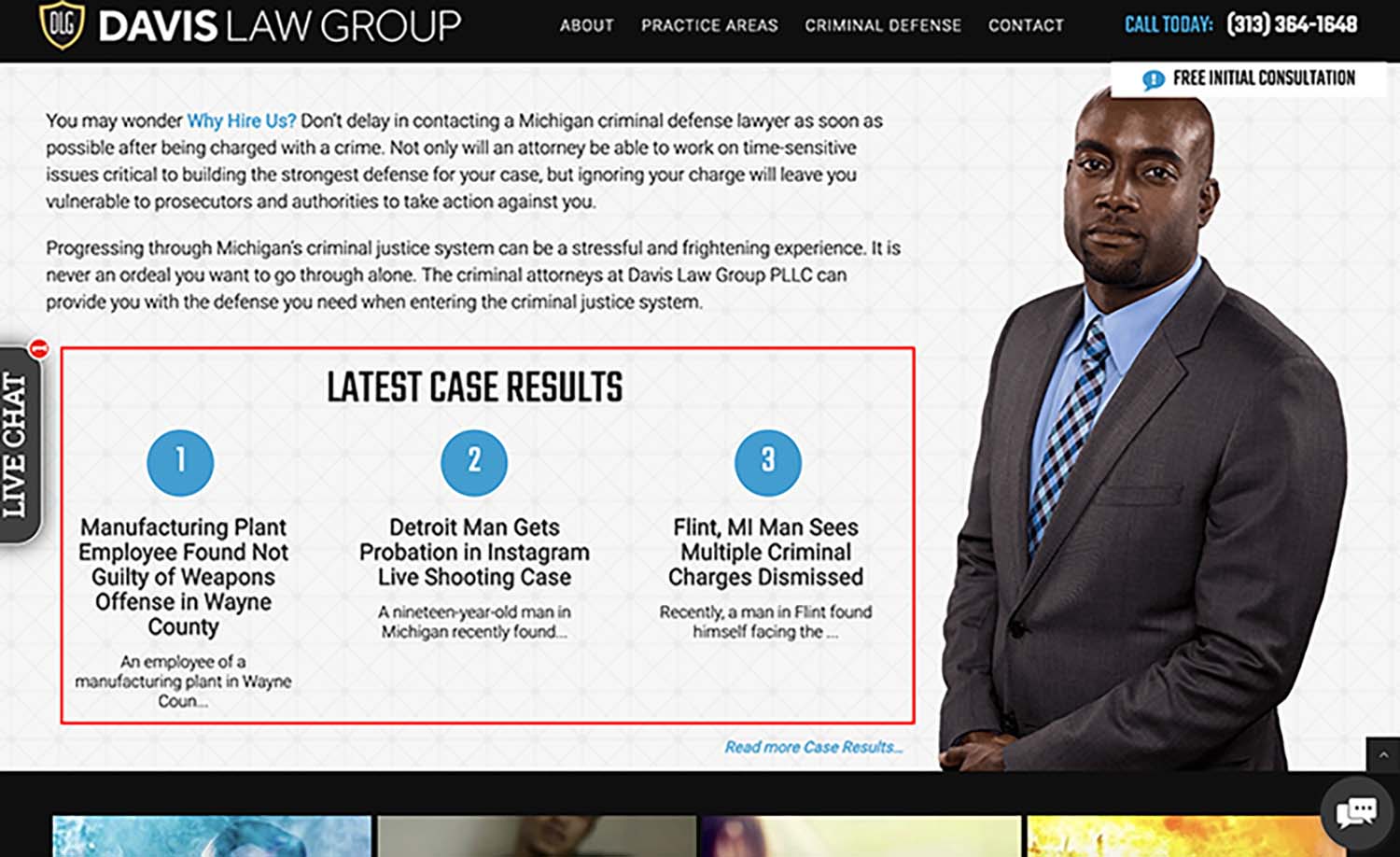 Your website needs to look and act the part of an always-available sales and marketing team. This means high-quality images, professionally written copy, and interactive tools to engage visitors, which are all part of a modern criminal law website.