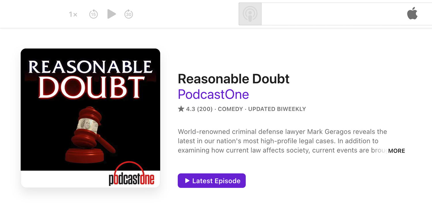 In the Reasonable Double podcast, by criminal defence lawyer Mark Geragos, he covers the latest in the USA’s most high-profile legal cases.